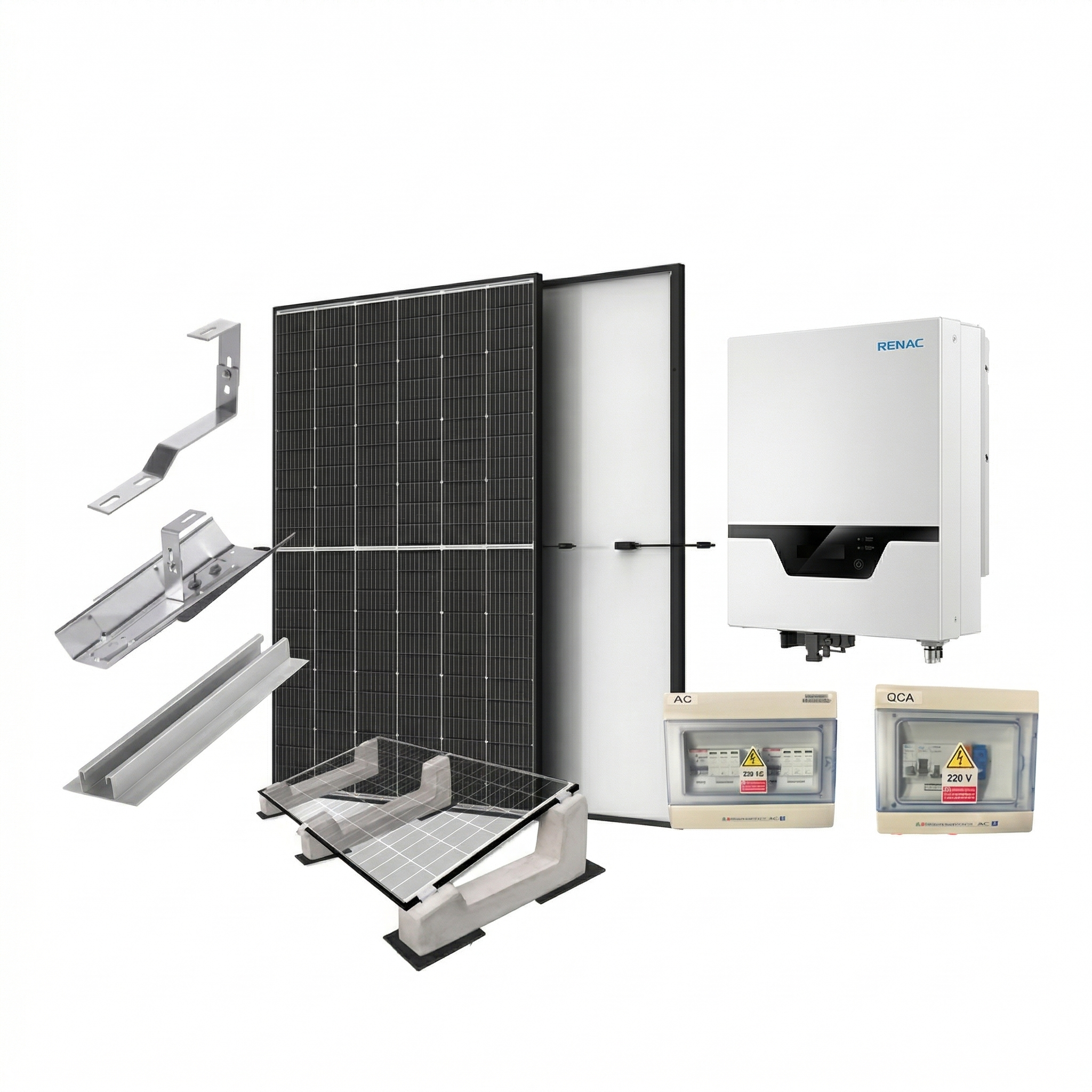 Kit di Protezione e Cablaggio: Include quadri elettrici AC/DC, cavi solari resistenti ai raggi UV e connettori MC4 per un’installazione sicura e a norma.